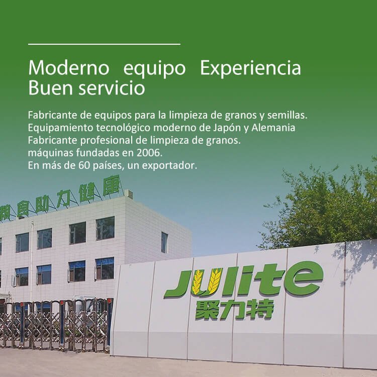 Hebei Julite Sorting Technology Co.,Ltd. se estableció en 2006, que se especializa en procesamiento de semillas, limpieza de granos y establece investigación y desarrollo, producción, ventas y servicio en general. Nuestra empresa está ubicada en la zona de desarrollo industrial de alta tecnología de Shijiazhuang, con un área de casi 10,000 metros cuadrados de investigación y base de producción, la producción anual es de más de 3,......